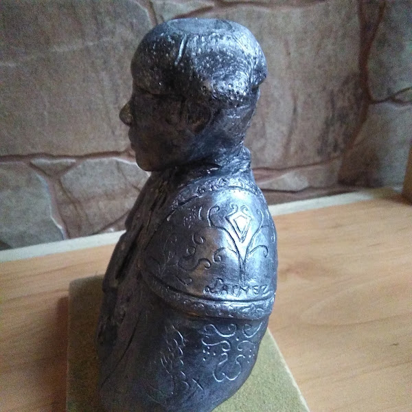 Y para el Abuelo, Antonio le hizo un torero con pasta de modelar. Experimentando con arcilla blanca para modelar, pintado con plata líquida con un toque de pintura negra para envejecer y base de madera con albero.