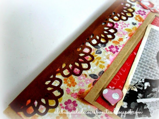 Pero al abrirlo en casa, vi que no era así, que simplemente, era un portafotos... Así que aunque la idea original se mantenía (decorar las portadas) las hojas interiores las tuve que hacer yo solita... Y como es una técnica que no tengo aún controlada, esta vez que guardo el resultado...