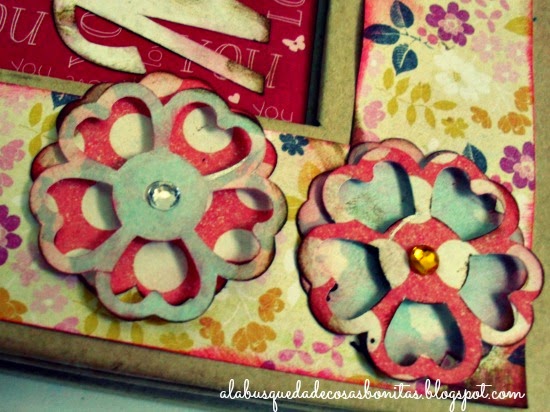 Bueno, continúo: lo primero, decorar la base de la portada, con papeles de "The sweettest Thing" (el de flores) y otro que tengo de otra colección. Tinta en los bordes, como me enseñó mi amiga Blanca...