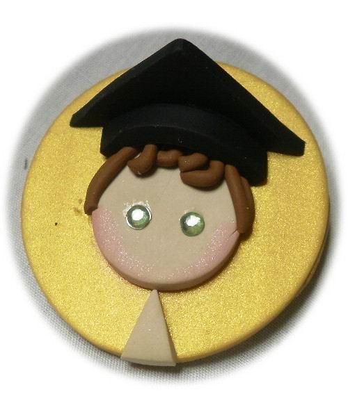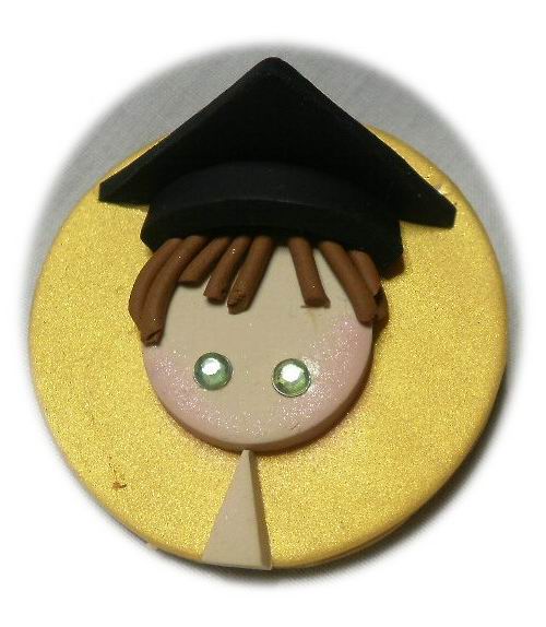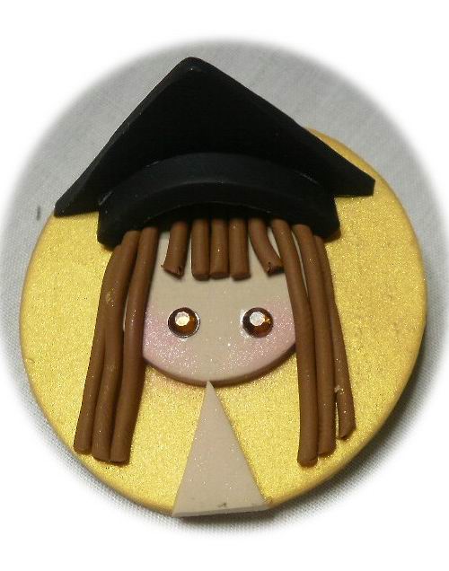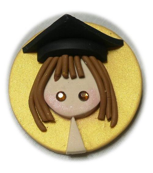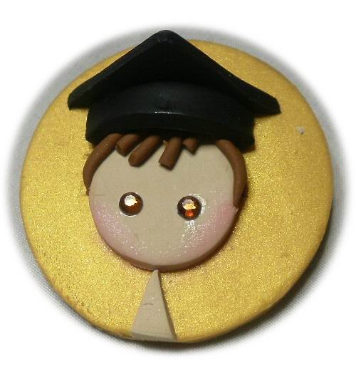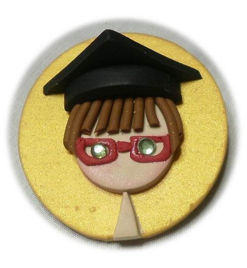 Broches de 4 centímetros de diámetro barnizados y con detalles en arcilla polimérica