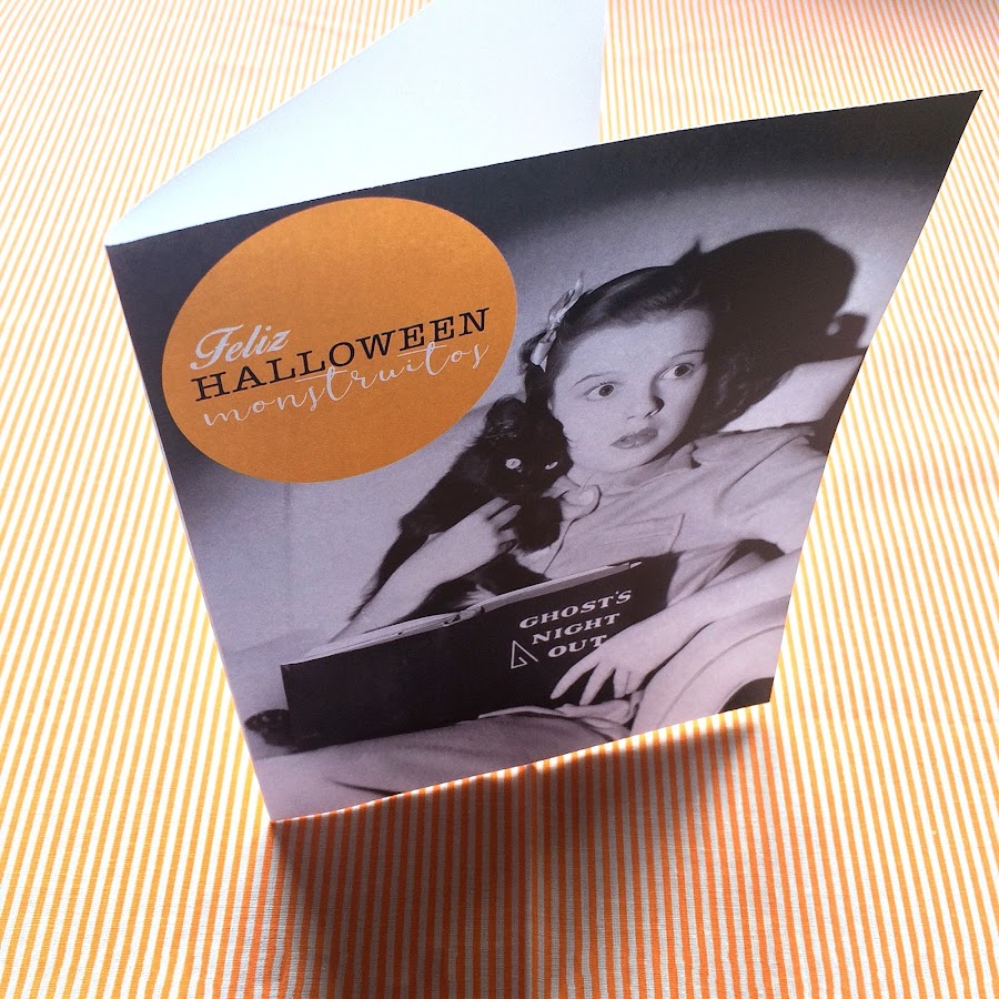 Por si acaso te lo perdiste hace unos días preparé algunas guirnaldas imprimibles para adornar, puedes ver el post completo aquí. Para cerrar el capítulo de Halloween 2016 he preparado también una tarjeta monstruosa con Judy Garland y un pequeño gatito negro como protagonistas: