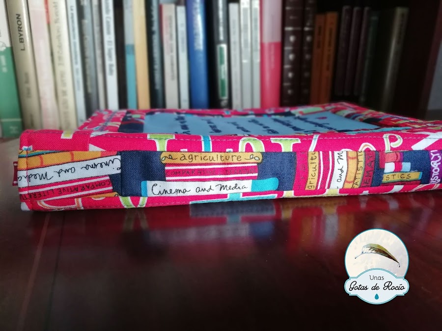 Una funda de libros para proteger los libros prestados con una cita que invita a disfrutar con la literatura en todos los sentidos.