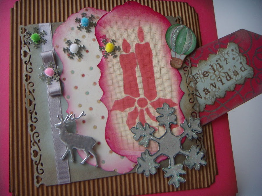 y como es costumbre en este tipo de entradas, os muestro las distancias cortas para que lo aprecieis mejor. Es una tarjeta realizada con colores poco habituales en estas fechas, pero no por ello menos vistosos.