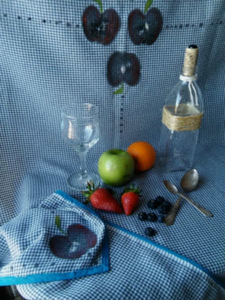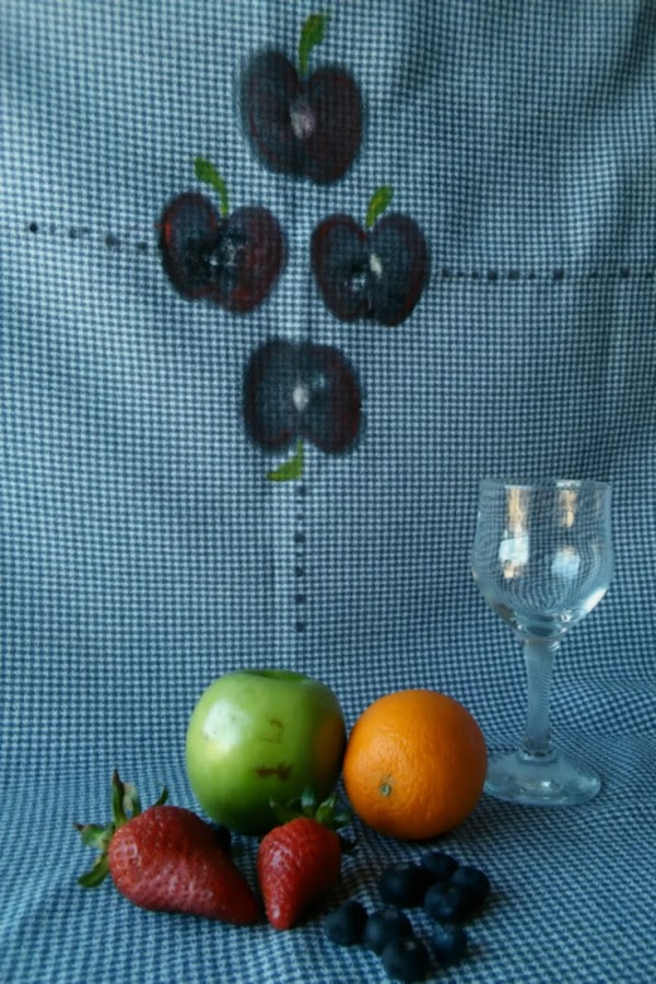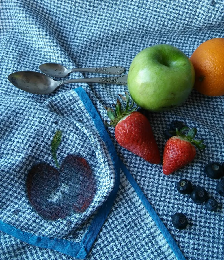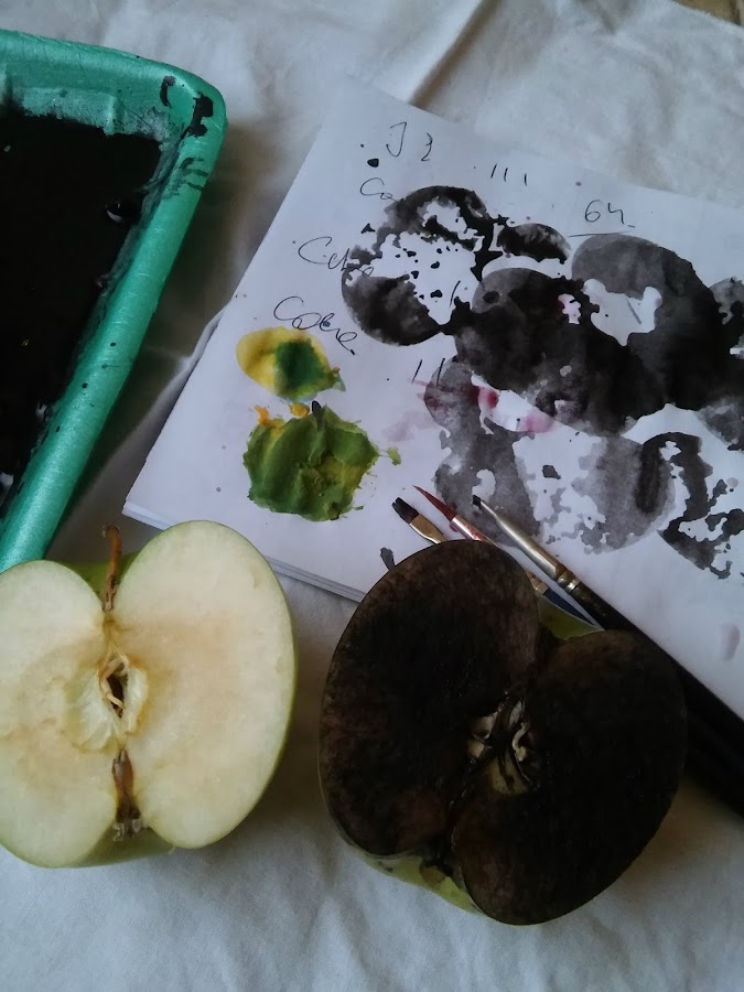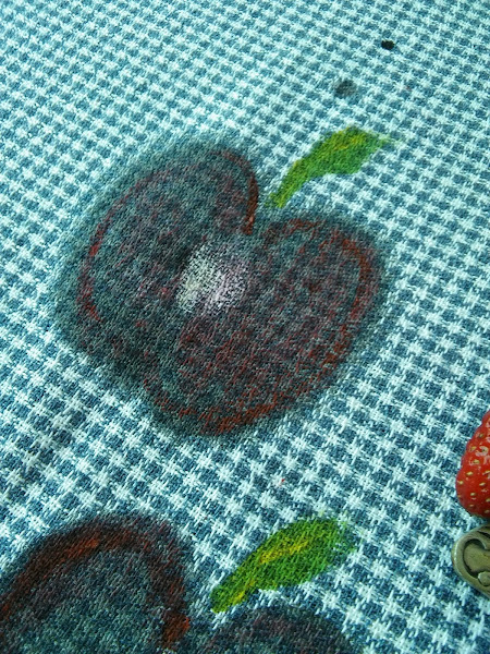 Simplemente usando la media manzana como sello vas apoyando en donde más te guste...
