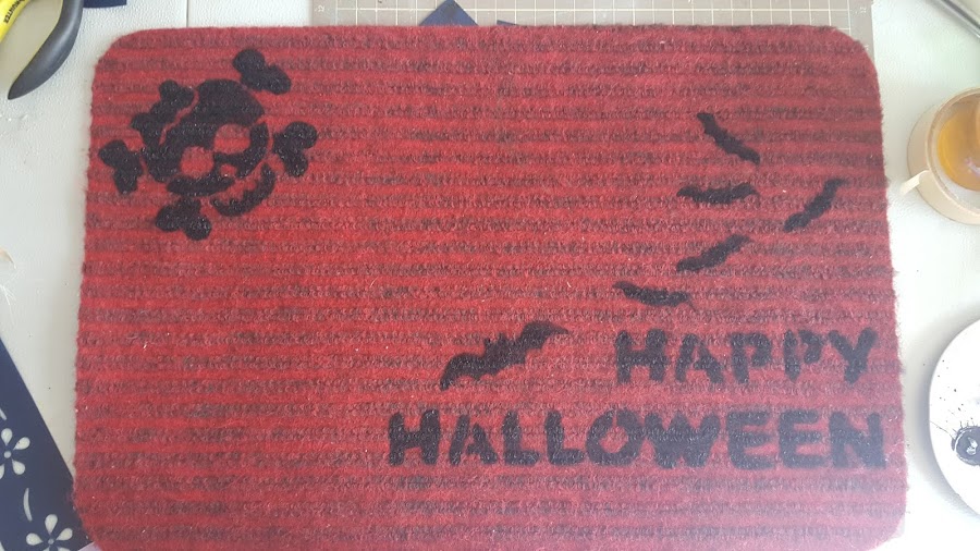 Hola queridos lectores, les quiero mostrar como es posible el cambio de un felpudo o tapete de entrada muy aburrido en uno muy divertido y especial para halloween.