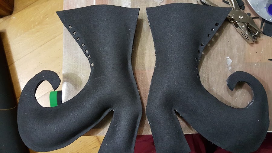 Pegué los bordes de las botas con silicona caliente y las rellené con guata o algodón industrial