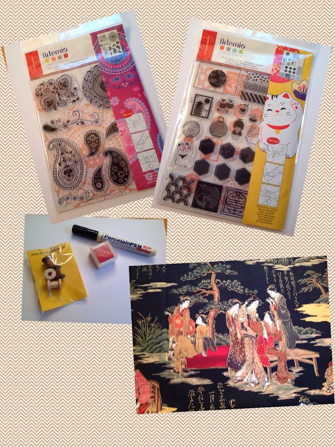 Aun así, piqué, piqué y piqué: Cogí unos sellos de silicona muy frikis (ya sabíais que me va el otaku, no?), tinta roja, un rotulador para hacer mis pinitos con loza, unos carretes pequeños para hacer algún colgante y una preciosa tela de estilo japonés (creo que haré un bolso y alguna cosa más, porque compré muuuucha)