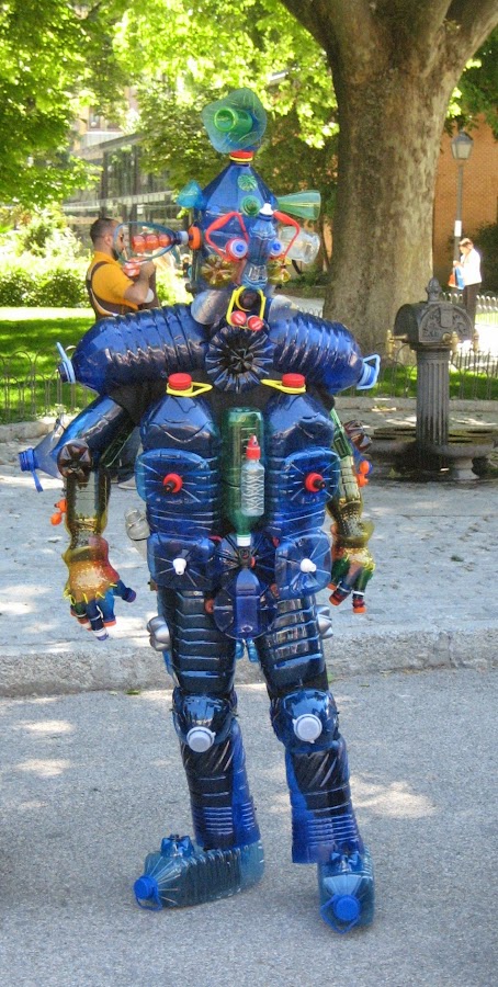 Y como la creatividad la encontramos por todas partes os dejo una foto de un señor que estaba trabajando en el parque disfrazado de robot. Pero no es un traje cualquiera, lo ha elaborado con botellas de plástico recicladas. ¡Me ha encantado!