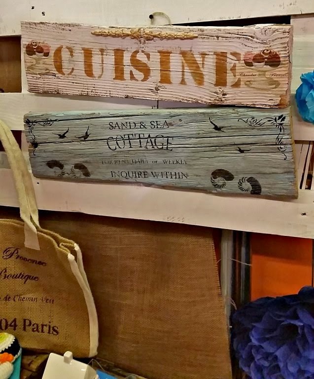 El stand quedó muy bonito con los palets, los pompones azules, las cajas de fruta haciendo de mesitas, la mesa con tela de arpillera y todos los adornos que llevamos nosotras