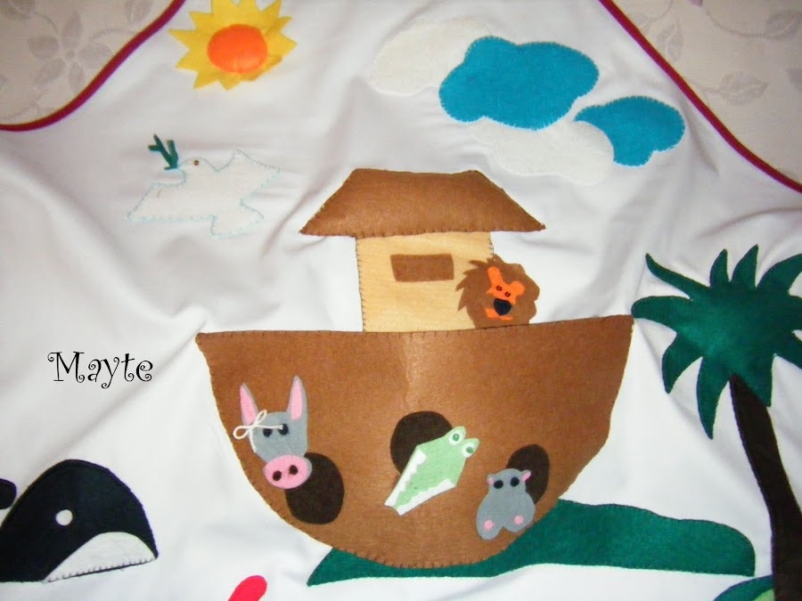 Unos de mis primeros trabajos en fieltro.....lo hice para una amiga que necesitaba explicar a los niños de su cole el ARCA DE NOE como los niños eran pequeñitos lo hicimos de forma muy infantil....el Arca es un bolsillo para guardar los dedoches...... los dedoches son las marionetas para los dedos y son animalitos......