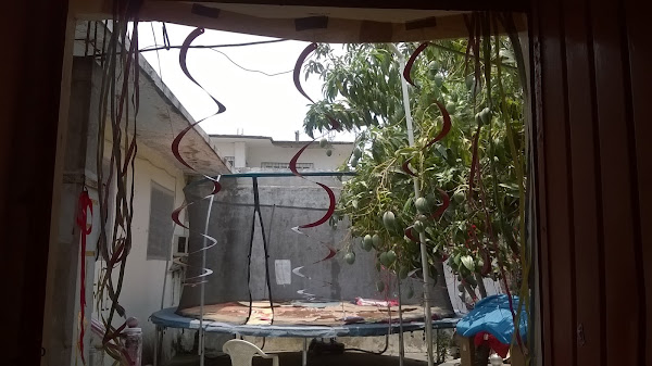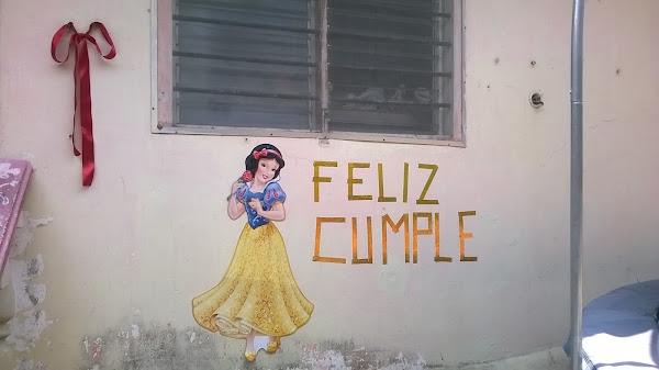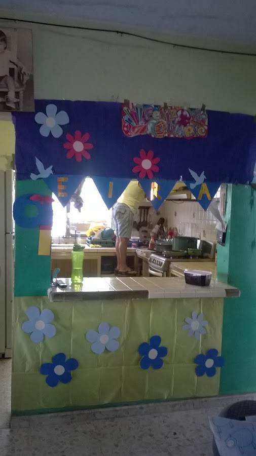La cocina donde se apagaron las velitas del cumpleaños de papel china, recortes de cartulinas de colores