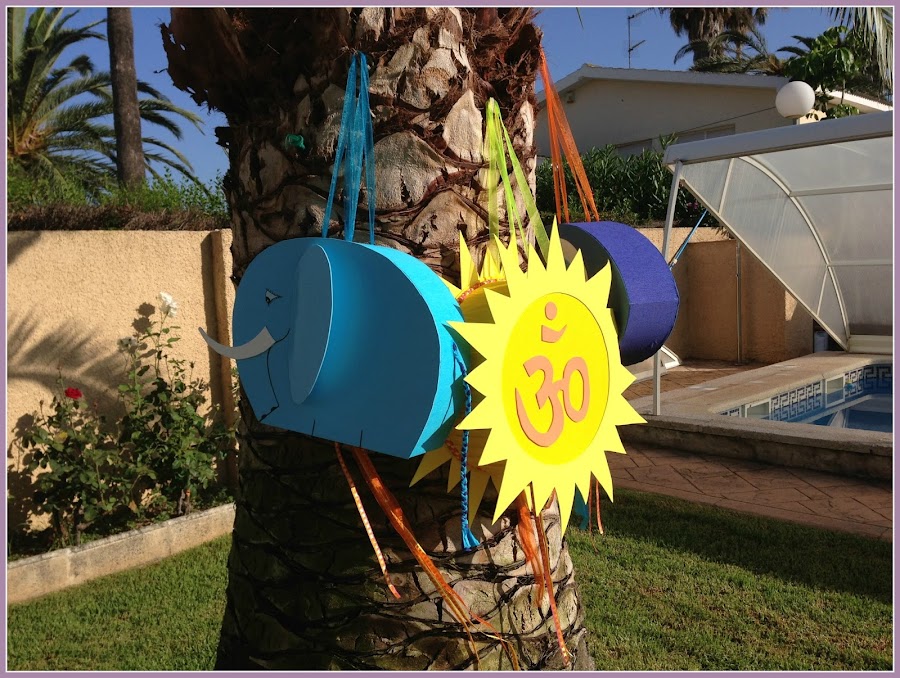 Como veis, quedan muy coloridas y vistosas. Mi marido no tenía claro que los niños tuvieran edad de piñatas (tienen 9 y 10 años), pero visto lo que les divierten nos ha quedado claro que sí (estoy segura de que a las mayores también nos encantarían, sólo hay que cambiar los regalitos: pulseras, collares, y todas como locas a por nuestras chuches).
