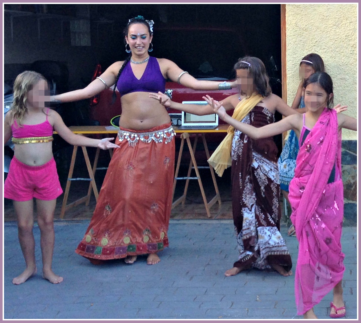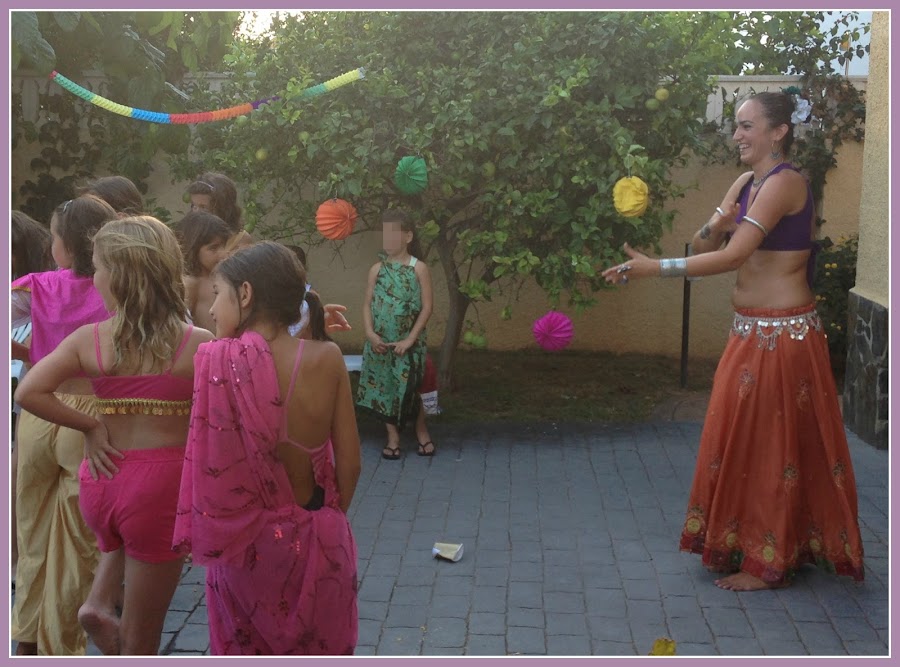 Y por último, gracias a una compañera de trabajo que hace danza del vientre localizé a una chica que vino a entretener un rato a las chicas (y sobre todo a los papás) con una demostración de danza (un mix danza tribal-Bollywood). Os pondría unas fotos de las mamás bailando, pero nuestros agentes lo desaconsejan sin contrato en firme.