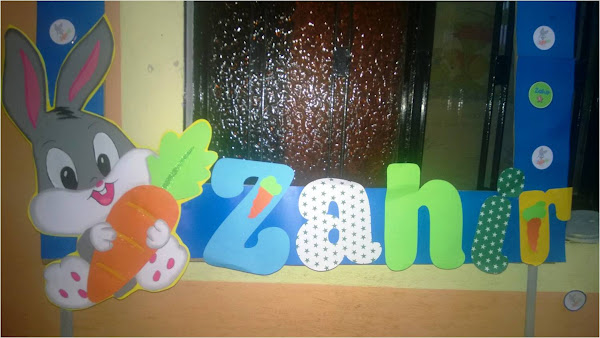 Eaboré el Baby BugsBunny en Foami y las letras en cartulina con ayuda de la Cameo..