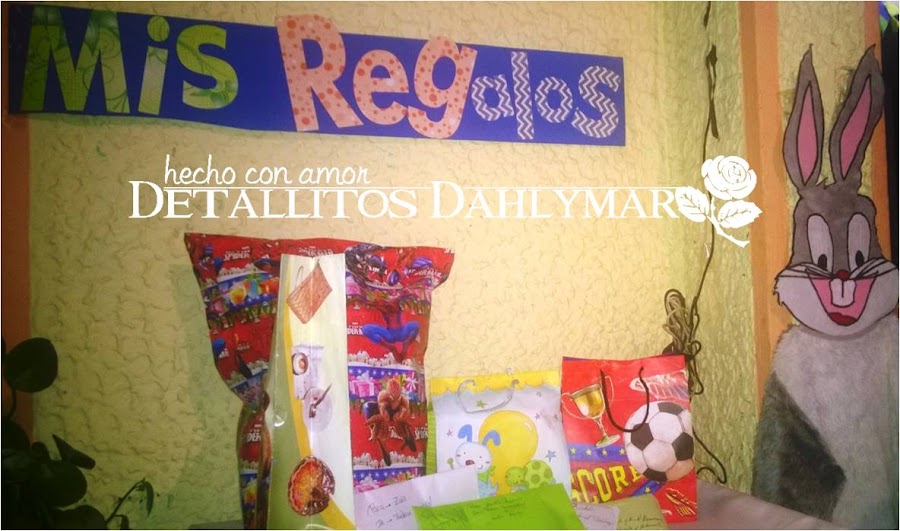 En el espacio destinado a sus regalos, colocamos este colorido letrero: