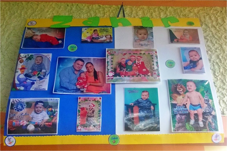 Luego realizamos un collage de fotos de cada mes de Zahir con su nombre que fue colocado en la parte superior de la mesa principal: