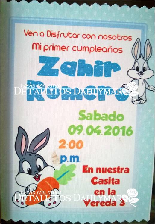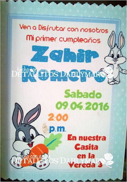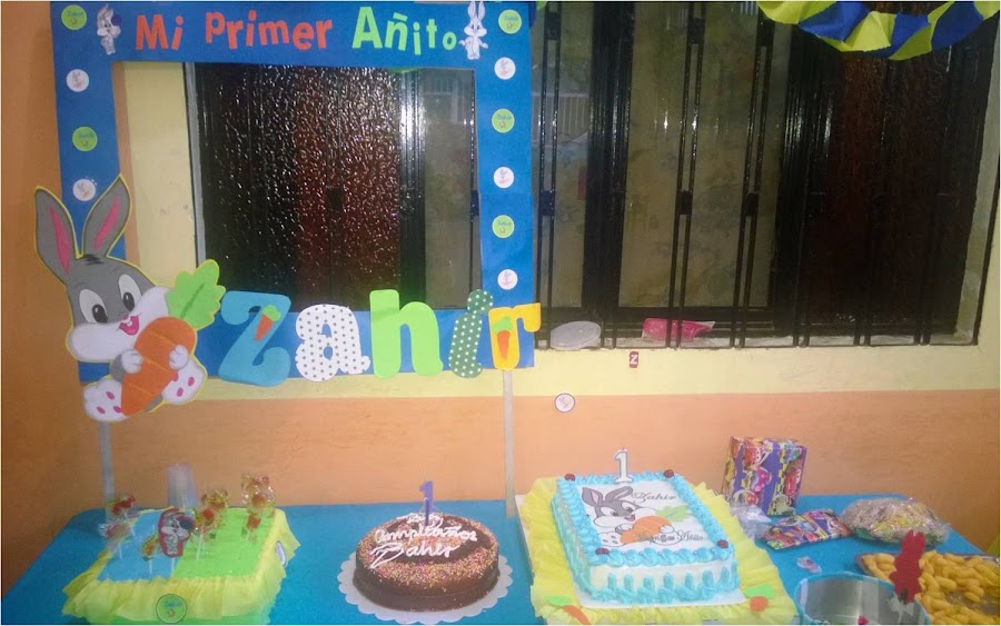 Hace casi 1 mes fue la fiesta del nené de unos amigos: Zahir.. su primer añito..! Y el motivo fue de Bugs Bunny bebé.. Si! el protagonista de Looney Tunes.