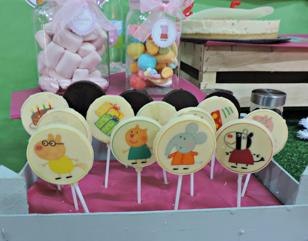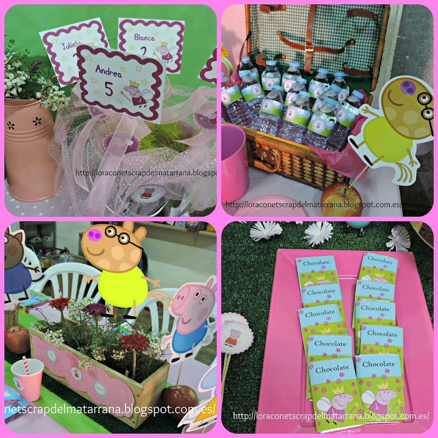 Y después de varios días, os dejo con algunos detallitos de lo que fue la "Fiesta Peppa Pig" que preparé para mi princesa y tres amiguitas más del mismo mes, día y años! jejejeje. Esas casualidades de la vida...