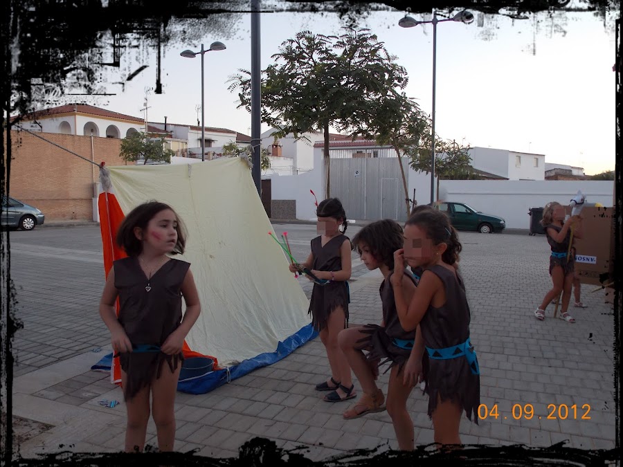 Mi amiga Estrella nos prestó su tienda para el poblado indio y su totem que aunque no sale en la foto estaba genial.