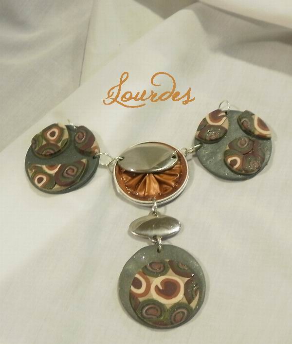 He combinado las cápsulas con botones metálicos, elementos de bisutería que he desmontado, unas murrinas de arcilla polimérica que tenia ya casi olvidadas y el resultado es: