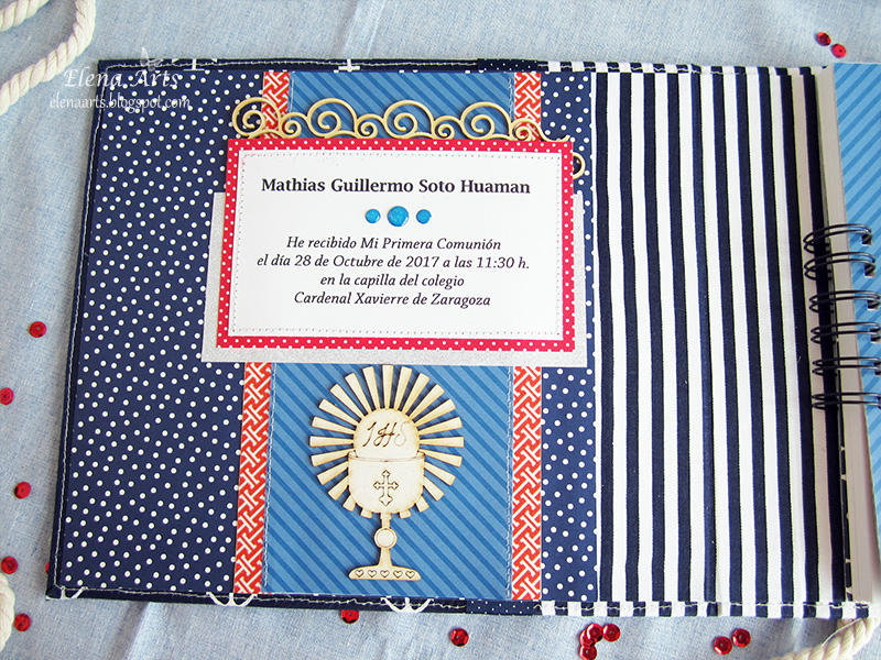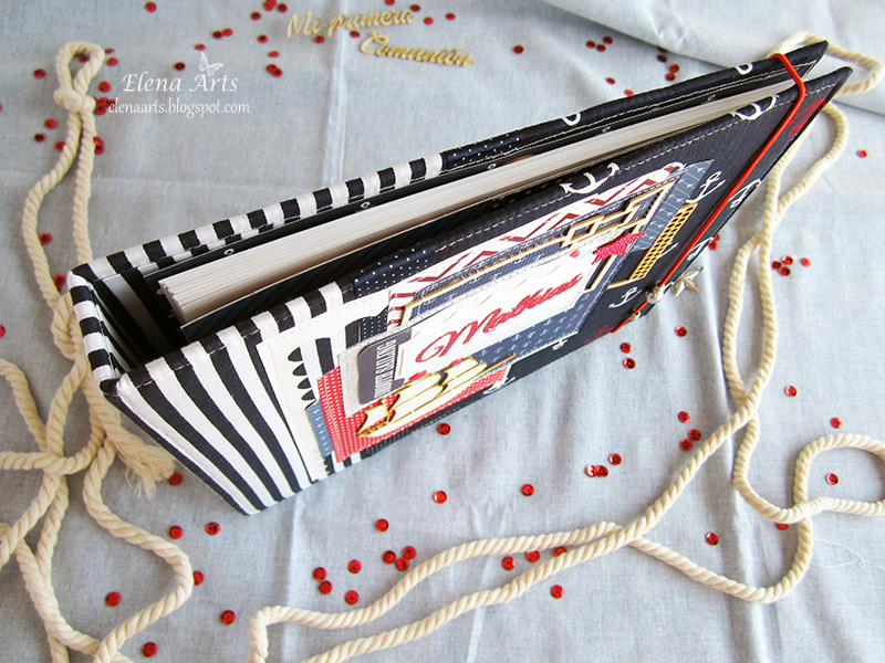 Y aquí ya se puede apreciar cual es la sorpresa que os había comentado al principio del post.... Sí, es la encuadernación de espiral. A primera vista las tapas son de una pieza, acolchaditas y cosidas por todo el perímetro. Pero al abrir el álbum vemos que hay una espiral que sujeta todas las hojas.