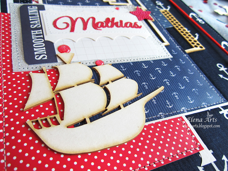 Las maderitas sin duda adornan muchísimo cualquier proyecto de scrap, yo utilizo los chipboards de Kora projects, como este barco por ejemplo.