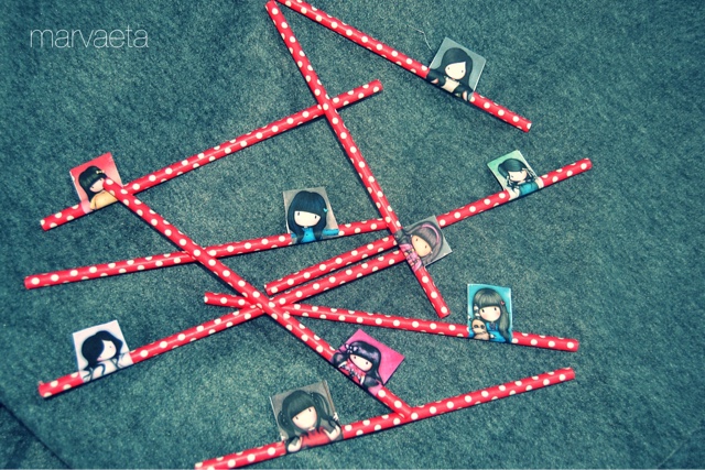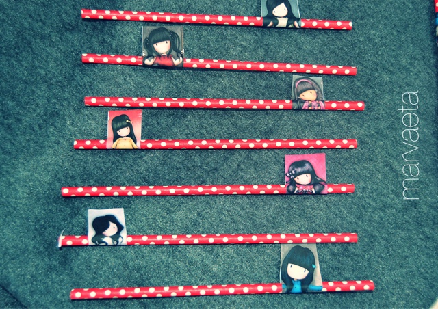 La idea es imprimir pequeñas imágenes de nuestras Gorjuss en papel de pegatina, recortamos y pegamos... difícil difícil (nótese la ironía)