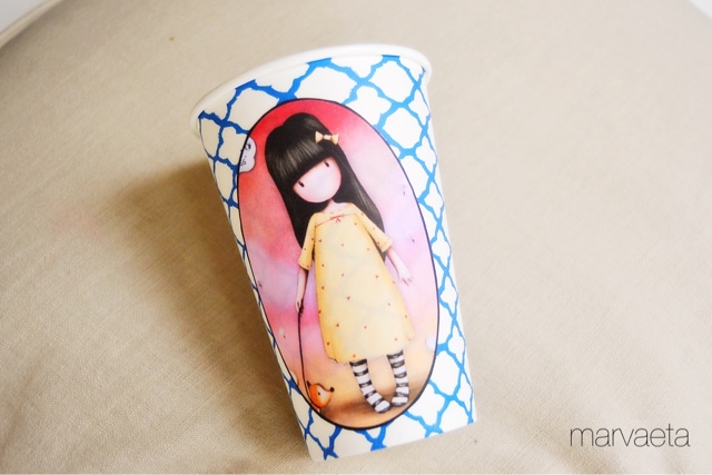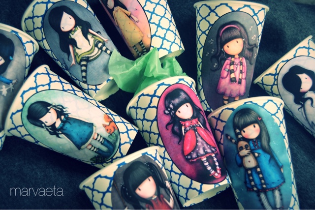 Si os habéis fijado, hay una distinta en cada vaso. Esto es porque la idea es que cada niña escoja una y sepa así cuál es su vaso, además de otras cosas que ya iremos contando por aquí... porque hay más... solo estamos empezando con los preparativos de nuestra fiesta.
