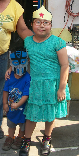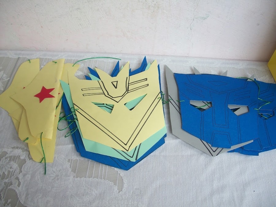 Con un molde que saque del internet y cartulina de colores les preparé máscaras para los niños invitados