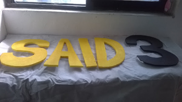 Para las decoraciones tenía todavía una placa de hielo seco y le hice unas letras con su nombre y los años que cumplía, después las pinte con acrílicas