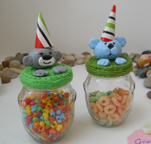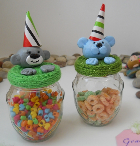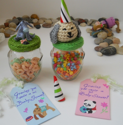 La idea es dar estos frascos como souvenir para una fiesta de Baby shower, llenos con dulces pero tuve que improvisar
