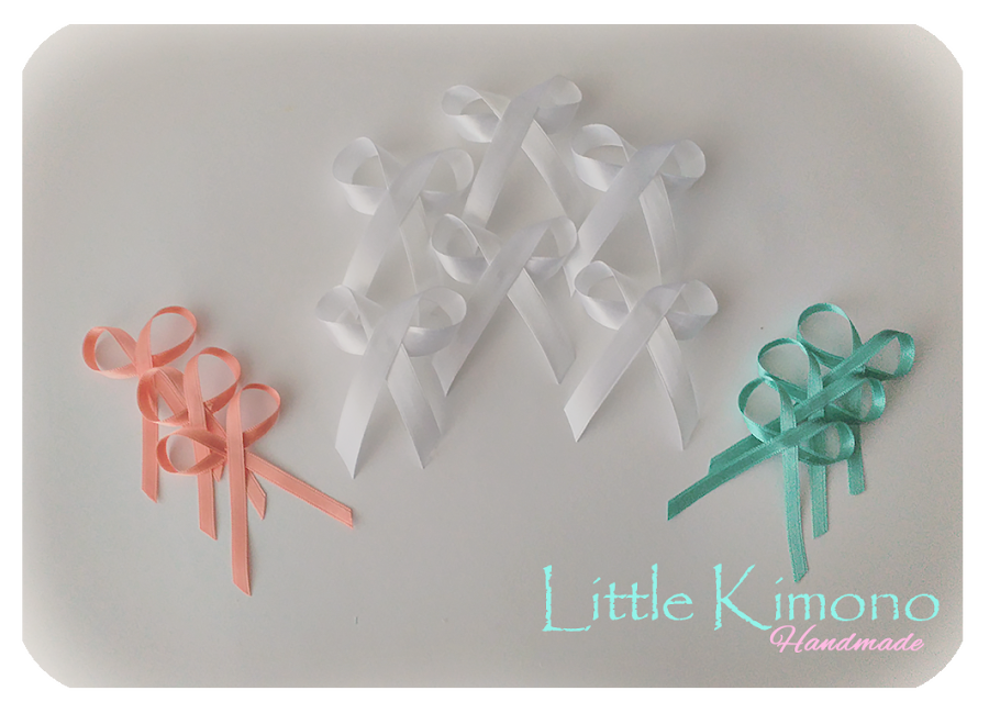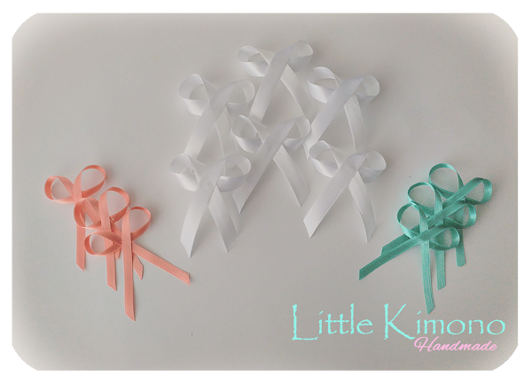 6. Sexto paso: haremos unos lazos de 2 tonos, puede ser banco y otro color para superponerlos y que queden más chulos ;) En mi caso usé blanco y 2 tonos más para alternarlos.