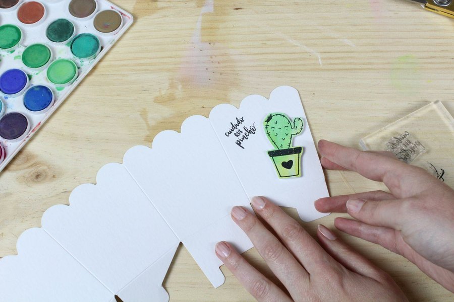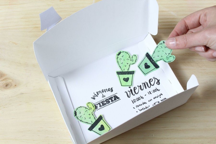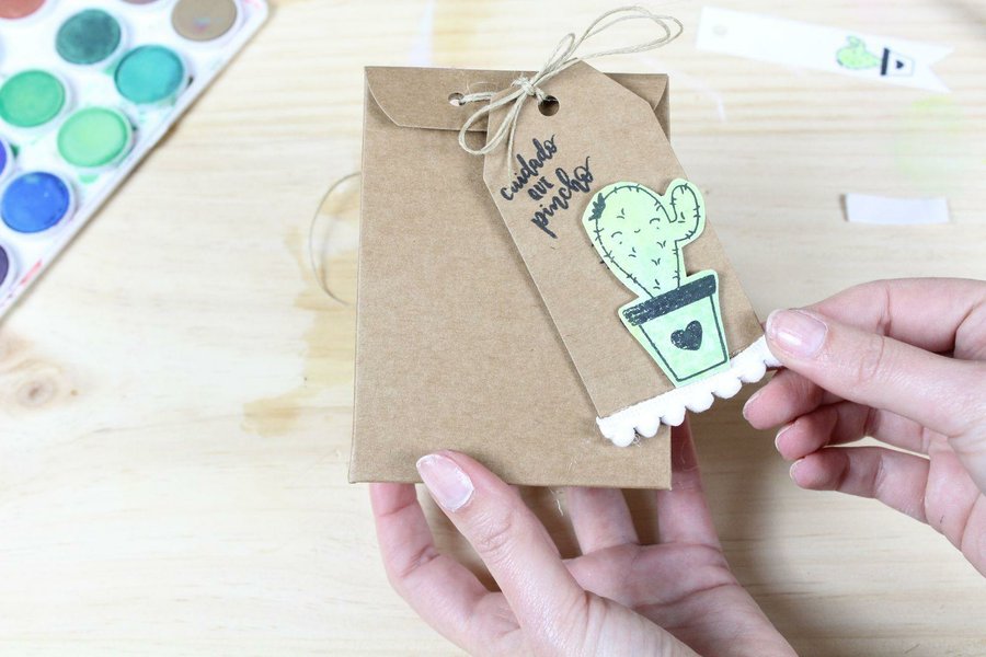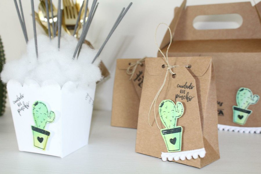 6 paso: decoramos el resto de cajitas con los cactus y las etiquetas.