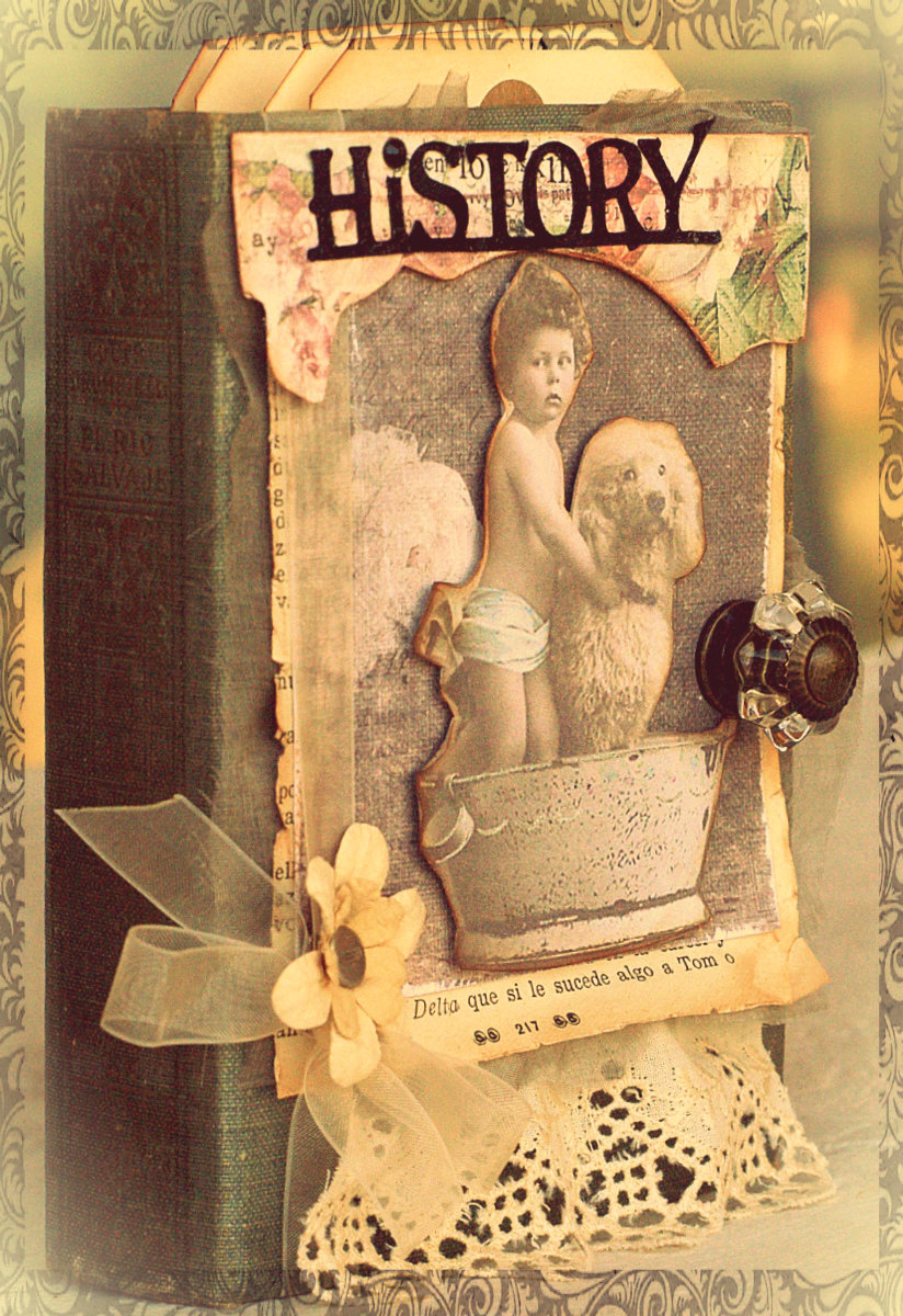 Crearemos un álbum, usando como tapas unas originales de un libro viejo, con una bonita composición en la portada y dentro una estructura que se le adapta perfectamente; con páginas pensadas para colocar nuestras fotos y adornos preferidos: un día especial, un viaje, un acontecimiento, fotos antiguas?
