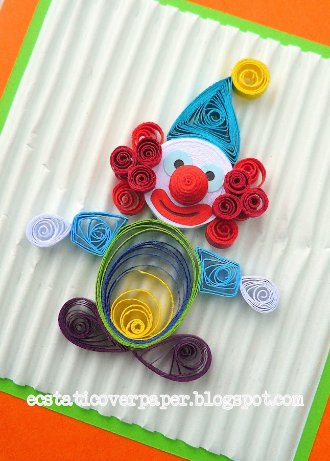 Este divertido payaso se ha formado con tiras de papel de varios colores, los enrollados van desde