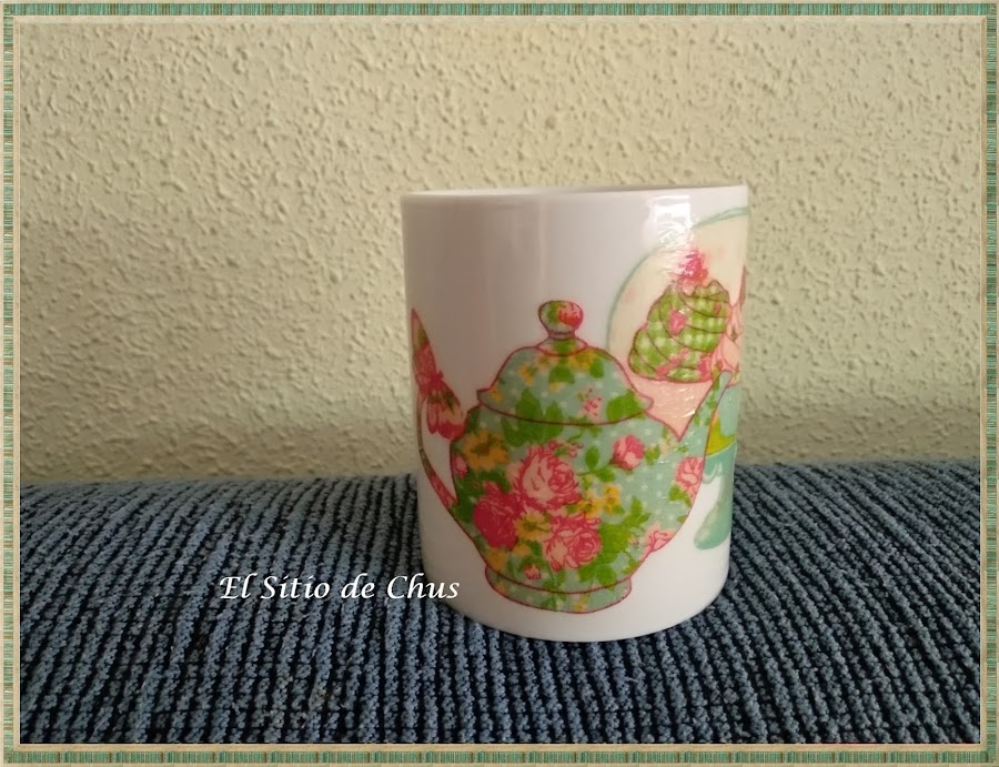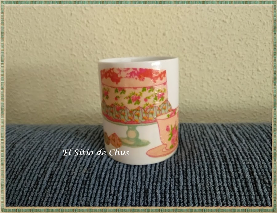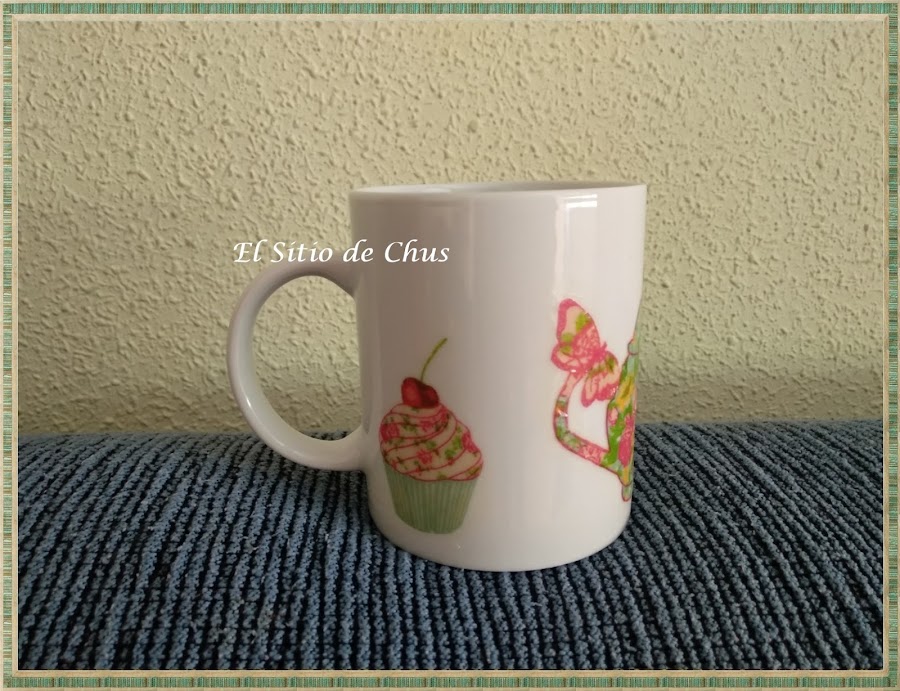 Este año decidí hacer algo práctico, no sólo de decoración y recordé un post de la maravillosa Isabel Vintage en el que nos explicaba con todo lujo de detalles la decoración de unas tazas con decoupage y barniz de uso incluso en lavavajillas y microondas. Os dejo su enlace lo explica perfectamente. Gracias Isabel.
