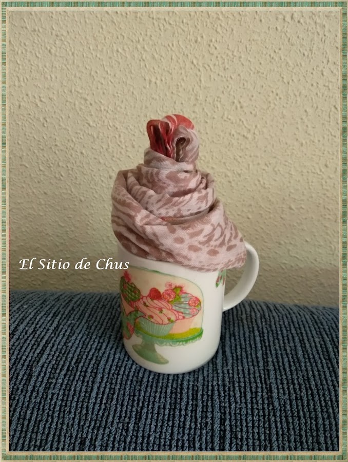 A mi Mercedes, mi profe de pilates, que es el detalle en persona, le compramos un precioso pañuelo entre los compañeros y simulé un cup cake con él, dulce verdad?