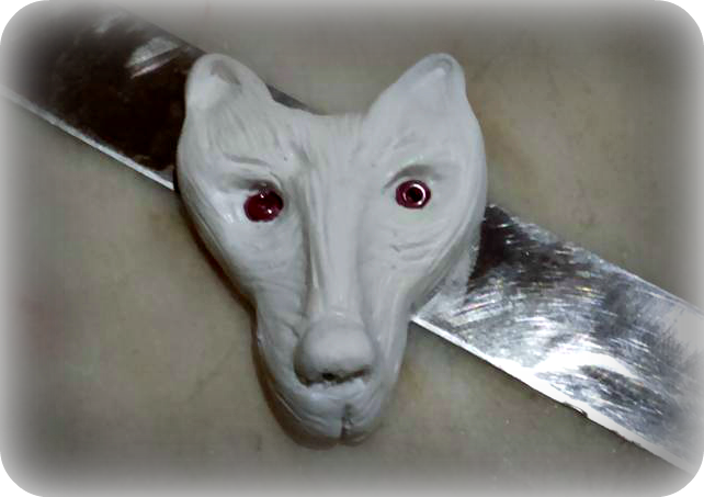 En el hueco de los ojos le pongo unos abalorios , que espero que le den fiereza al bicho...
