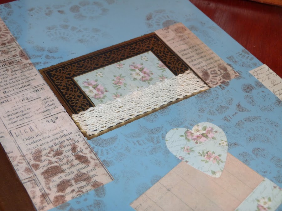 ... otros más por allá... una puntillita, unos estarcidos con plantilla de blonda en el mismo dorado viejo...