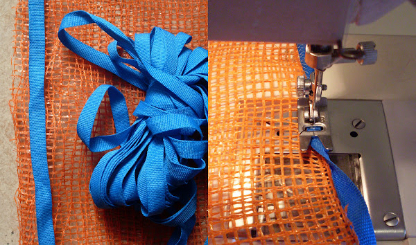 Con una cinta de gross o bies le coses los bordes, teniendo la precaución de poner la bolsa doble.