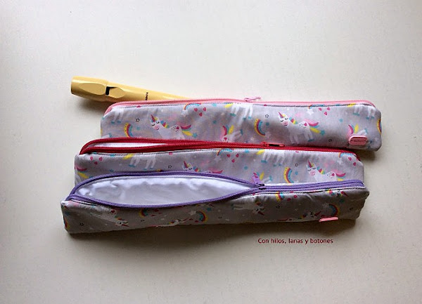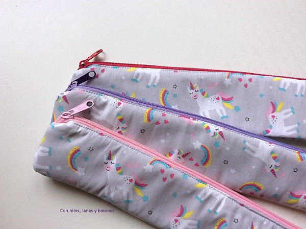Seguro que ahora mismo estáis pensando, ¿todos los estuches con la misma tela? ¿cómo van a distinguir sus estuches en clase? Muy fácil, cremalleras de colores.