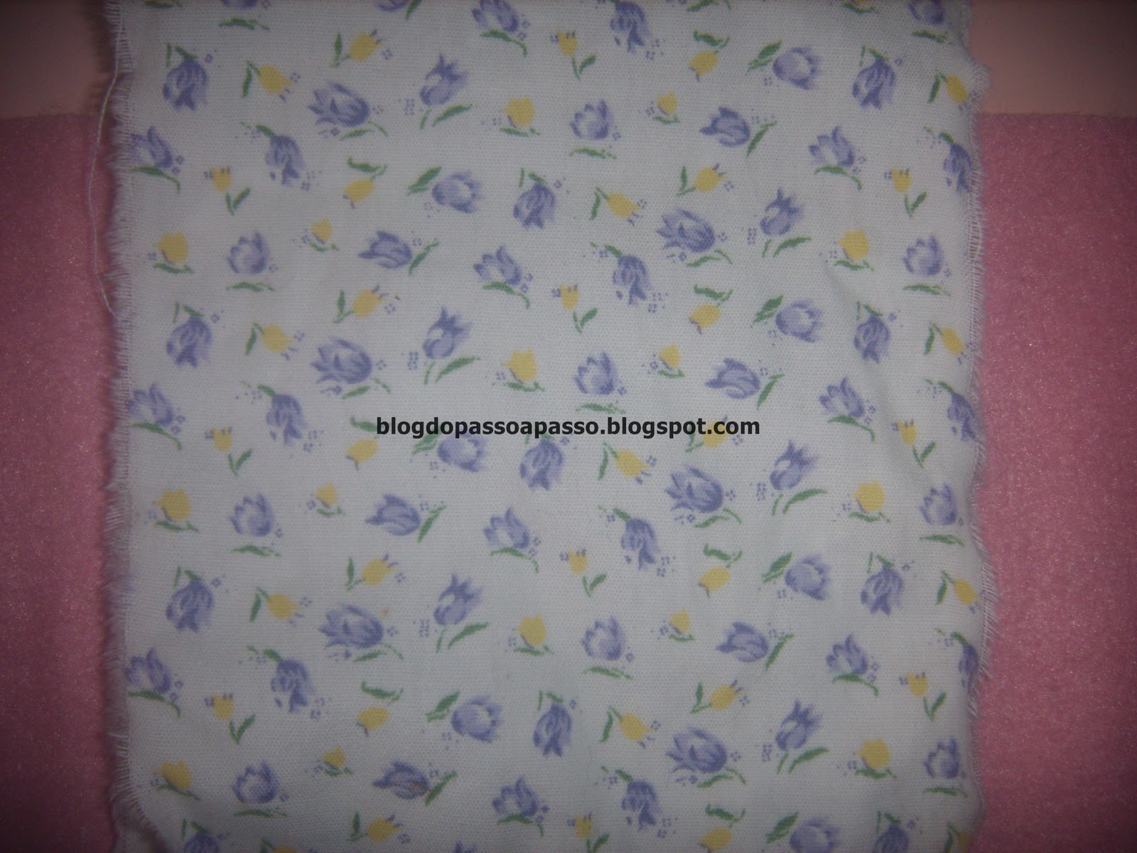 Pongas la flor cortada arriba de la tela que debe estar al revés.