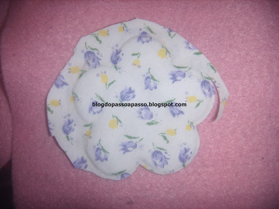 Sobreponha a flor cortada no tecido pelo avesso.