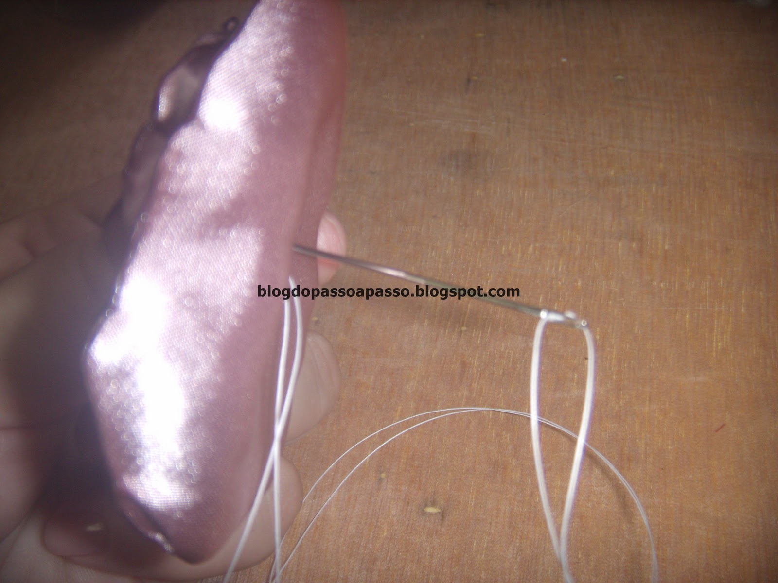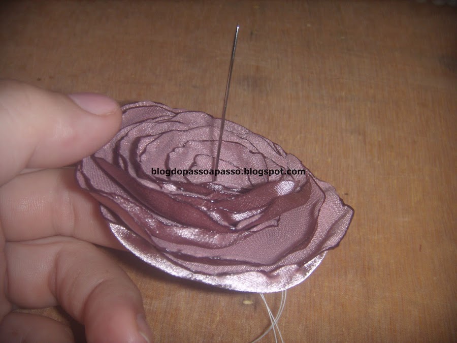 Enfie a agulha no centro da flor e costure, dando alguns pontinhos.