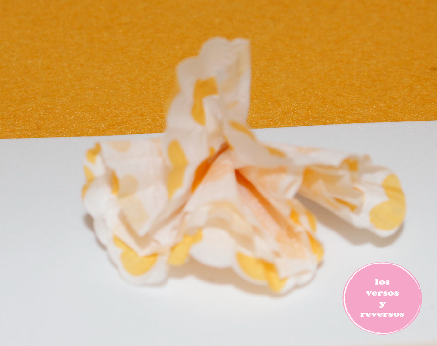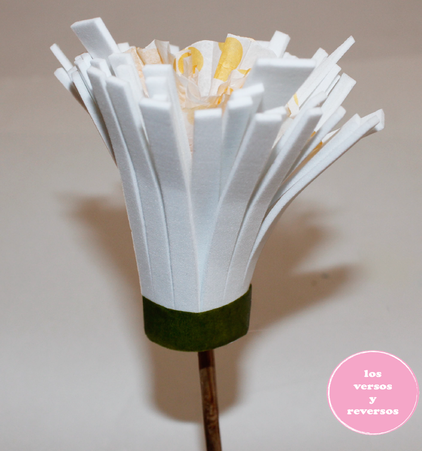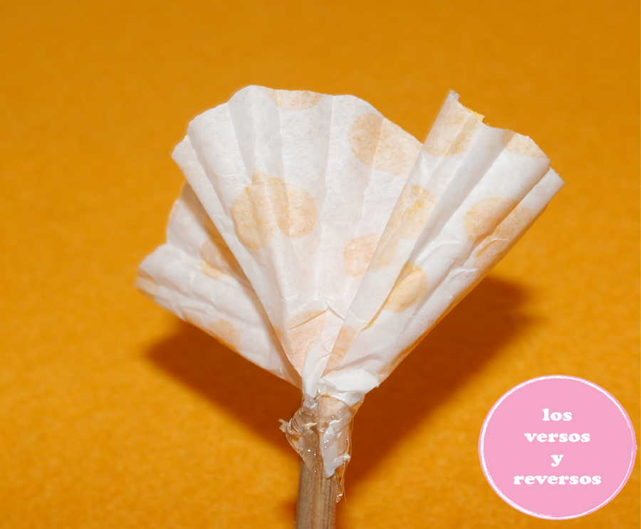 Y entonces, la pegué al palito de madera que será el tallo de la flor.