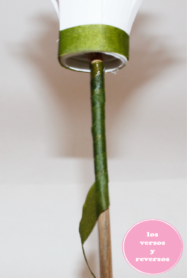 Y luego, puse la cinta floral en el palito, ya que es el tallo.