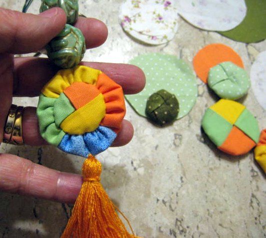 ...o cuidado desse fuxico é a colocação dos meios círculos de maneira a ficarem bem juntinhos...