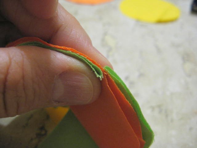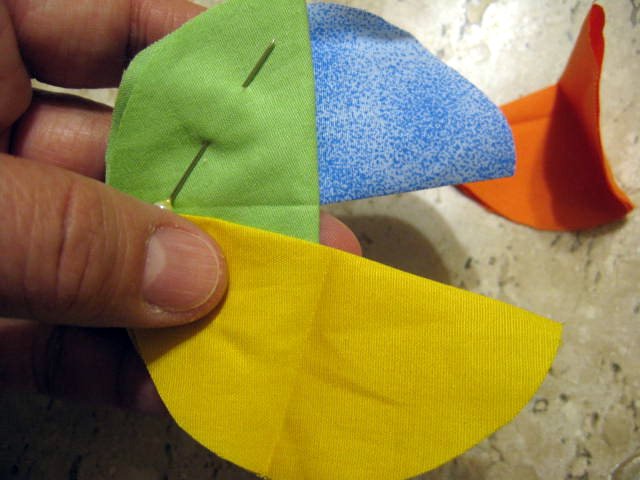 ..coloque um alfinete e faça da mesma maneira com a terceira cor...