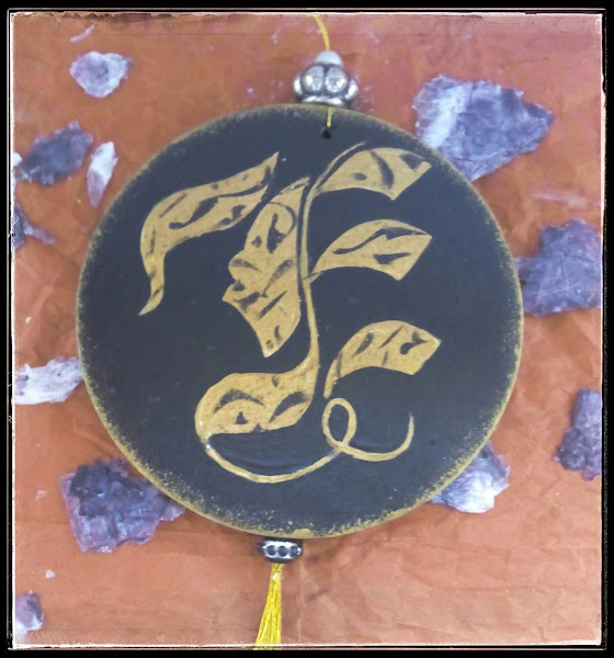Una vez seca la pintura dorada, hice unos starcidos en color negro sobre la misma inicial, para que no quedase tan plana.