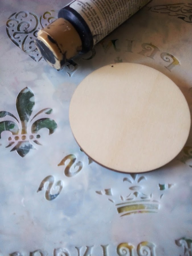 Como veis es un redondel de madera( que compré en la ultima feria de Creativa en Madrid) de unos 10 cm de diametro y 1 cm de grosor.